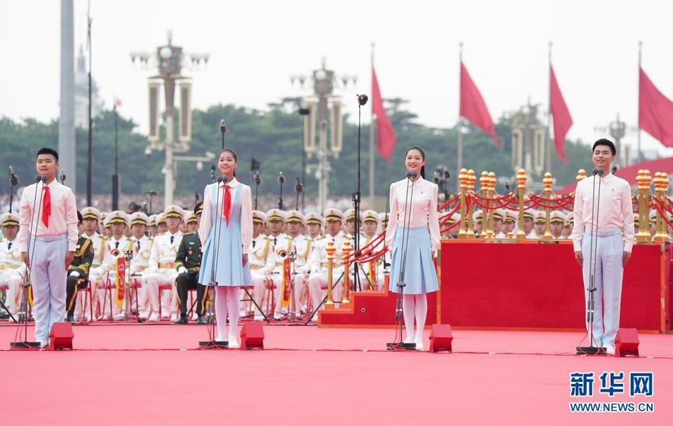 7月1日上午,庆祝中国共产党成立100周年大会在北京天安门广场隆重举行。这是共青团员和少先队员代表集体致献词。